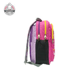 Two sided backpacks with printed monster truck and car designs that offer a creative choice.
